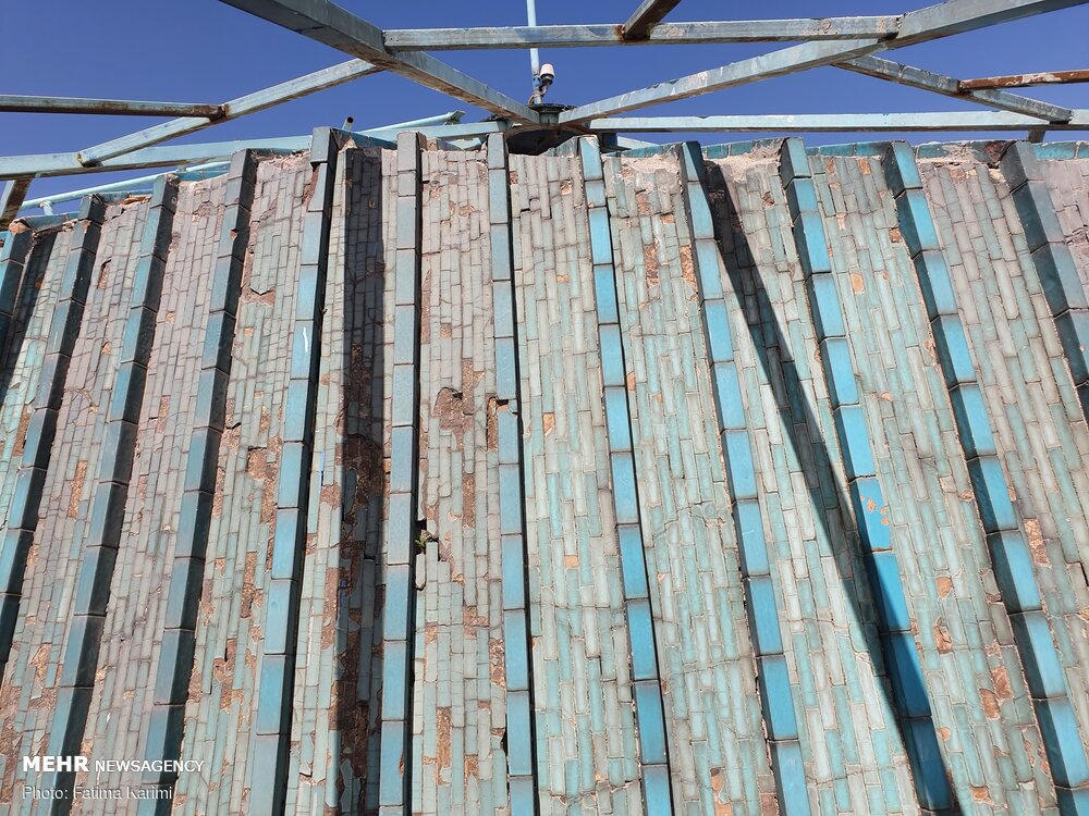 ریزش کاشیهای گنبد فیروزهای را هر بازدیدکننده ای به راحتی میتواند ببیند. جایی که از آخرین نقطه سطح برج، آب به داخل آمده و سرما و گرما و ریزش آب حتی به کوچکترین روزنه، موجب لغزش و در نهایت ریزش کاشیهای آبی میشود.